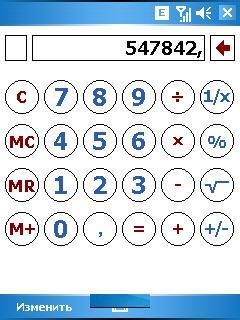 Калькулятор выполняет операции с четырьмя арифметическими действиями, процентами, квадратным корнем, отрицательными числами, десятичными дробями, функцией 1/х и памятью. |