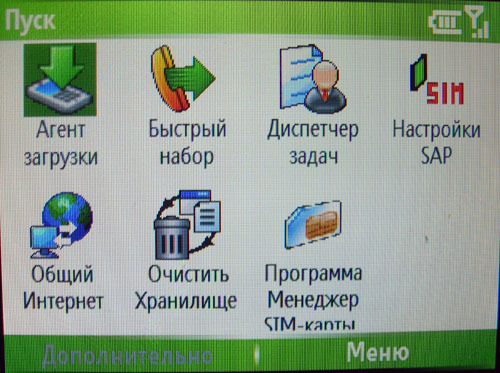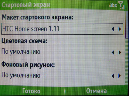 Меню HTC S620