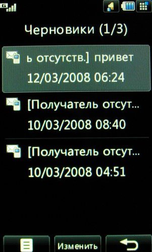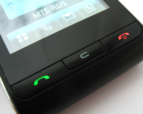 <p>На лицевой панели находятся всего три кнопки, это зеленая и красная трубки, а также кнопка удаления С. Последняя служит и для стирания символов при наборе сообщений и текстов, и для удаления файлов. Пользоваться ей не слишком удобно, так как она маленького размаера и втиснута между двумя другими кнопками. Постоянно нажимаются именно они. Казалось бы, кнопок мало, а места для них много, можно было бы придумать более эргономичную компоновку. Хорошо хоть, что если при наборе сообщения случайно нажать красную трубку, то оно автоматически сохранится в черновики.</p>