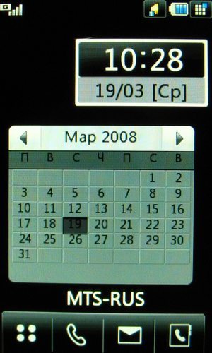 <p>Теперь немного о виртуальных клавиатурах. Первая из них имитирует обычную цифровую клавиатуру телефона, а значит придется несколько раз нажимать на одну кнопку для перебора символов, или воспользоваться режимом Т9. Вторая, полноценная QWERTY, доступна не во всех случаях - например, при написании сообщений или заметок она присутствует, а вот при создании контакта или вводе адреса сайта в браузере вызвать ее не удастся. При выборе QWERTY-клавиатуры ориентация экрана меняется на альбомную, что увеличивает площадь клавиш и облегчает набор. Мы провели мини-опрос, в результате которого большинство опрошенных остались довольны клавиатурой. А вот людям с крупными пальцами набор удавался с трудом, особенно при быстрой печати. Связано это с тем, что символ печатается при отрывании пальца от поверхности экрана, а не при нажатии, что дает возможность быстро исправить введенный символ уже при вводе, просто проведя пальцем в сторону правильной буквы. Однако когда палец касается сразу нескольких кнопок, то при отрыве может пропечататься любая из них. Если же внимательно следить за каждым вводимым символом, то таких проблем не возникает. Виртуальные клавиатуры Apple iPhone или HTC Touch в этом отношении гораздо удобнее. Кроме того, весь русский алфавит на кнопки не поместился, поэтому для ввода части букв(б, ё, ж, х, ъ, э, ю) приходится совершать два лишних нажатия, для переключения раскладки.</p>