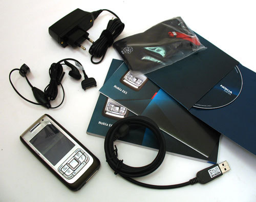 · Комплектация: смартфон Nokia E65; батарея BL-5F, зарядное устройство AC-4, моногарнитура HS-5, USB-кабель CA-53, тканевый чехольчик CP-18.