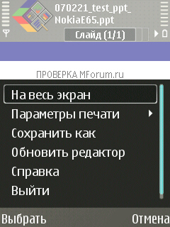 Встроенный RealPlayer понимает только MPEG4 и 3GP, "виндовский" формат WMV телефон игнорирует. Зато есть перемотка вперед/назад (навигационная кнопка вверх/вниз), и полноэкранный режим (на самом деле картинка занимает не весь экран, а процентов 90%, ориентирована она при этом альбомно, то есть, телефон надо держать горизонтально). При входящем звонке воспроизведение ставится на паузу, после разговора вы можете продолжить просмотр. Процессор ARM9 тянет видео вполне сносно: откровенных "тормозов" нет. |