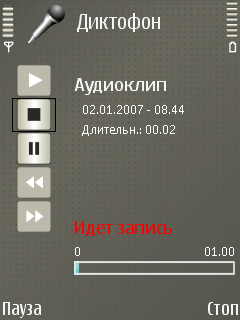 Диктофон расстроил нас не меньше будильника: опять одна минута! Где забота о бизнес-пользователе? Ах вот она - отдельная кнопочка для записи. Хорошо еще что телефонный разговор можно зафиксировать. Пример <a href="/audio/1/070221_nokiae65_voice.amr">диктофонной записи>>></a> |