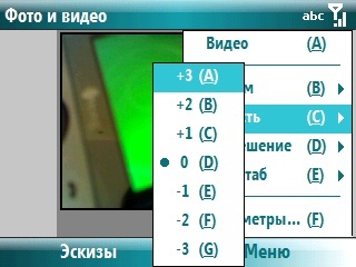 Окно камеры расположено на задней стороне посередине. Никаких защитных приспособлений оно не имеет, так что протирать его придется часто. Настройки камеры стандартные для Windows Mobile.