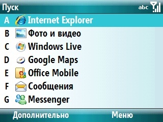 | Меню Palm Treo 500 |  |