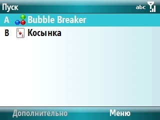 В списке игр привычные "Косынка" и BubbleBreaker - пасьянс и логическая головоломка "шарики". Есть и Java-эмулятор, предназначенный для запуска обычных джава-игр. |