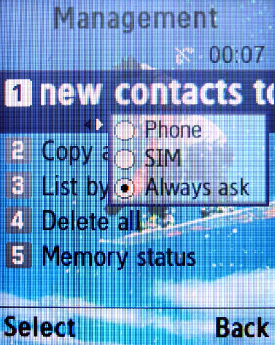 Справочник рассчитан на 1000 записей плюс 220 на сим-карте. Свои мелодии и картинки можно присваивать не только именам, но и группам, которых предустановлено 3 (семья, друзья, офис) плюс возможность создавать свои собственные. В качестве рингтонов можно использовать как встроенные и загруженные сигналы, так и диктофонные записи. Для каждого нового имени указывается имя и фамилия абонента, мобильный, домашний рабочий номера, факс, e-mail-адрес, картинка, мелодия, группа и текстовая заметка. Справочник и отдельные контакты можно скопировать на симку или карту памяти, а также передавать в сообщениях или по Bluetooth. |