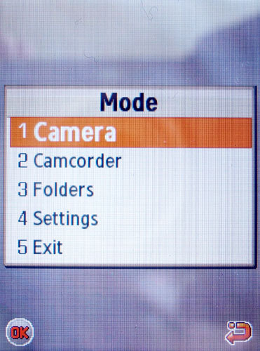 <p>Правой софт-кнопкой переключается режим фото\видео, отсюда же можно перейти к просмотру файлов, а также отрегулировать некоторые дополнительные настройки. Это качество изображения (нормальное, отличное, наилучшее), звуки затвора, зума и яркости (можно их отключить совсем) и выбор устройства хранения.</p>