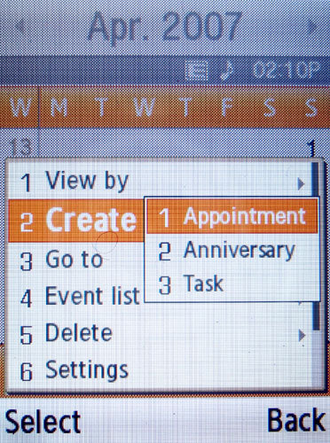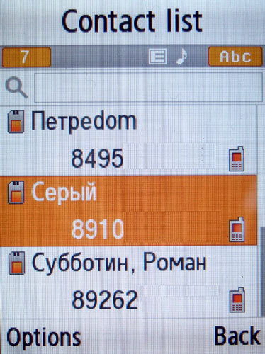 Справочник снабжен всем традиционным набором опций. Максимальное количество контактов – 1000 плюс еще 250 на сим-карте. При вводе каждого нового имени указывается имя и фамилия абонента, мобильный, домашний рабочий номера, факс, e-mail-адрес, картинка, мелодия, группа и текстовая заметка. Картинки и мелодии можно присваивать не только отдельным именам, но и группам, которые перед этим нужно создать, ибо предустановок нет. На звонки (как персональные, так и групповые) можно ставить даже видеоролики. Из остальных опций отметим быстрый набор (он доступен для кнопок «2»-«9»), создание своей визитной карточки, копирование справочника на сим-карту и в телефон и его удаление. Контакты можно передавать в сообщениях и по Bluetooth. |