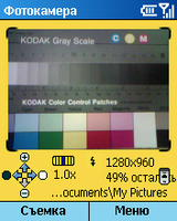 Настройки камеры ничего выдающегося из себя не представляют. Шесть разрешений от 128х96 до 1280х960 точек, шесть настроек баланса белого, выбор папки сохранения снимков, таймер автосъемки, максимальное количество вспышек, опция штампа времени на фото и др. Во время съемки две трети экрана выполняют роль видоискателя, под которым находится служебная информация: уровень контрастности (7 делений), цифрового зума (4-кратный). Внешний экран также может выступать в роли видоискателя после нажатия внешней кнопки «камера» (само собой, телефон должен быть при этом закрыт). Эта функция заменяет привычное зеркальце для автопортрета. При одновременном нажатии кнопки камеры и кнопки качели громкости срабатывает вспышка, а фотография автоматически сохраняется. От встроенной вспышки, к сожалению, толку мало, но это лучше, чем ничего, а у камерфонов, все-таки эта функция пока редкость.