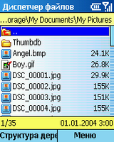 Диспетчер файлов - мобильный аналог проводника. Менеджер содержания папок смартфона. Отправка файлов по E-Mail, IrDA, MMS, Bluetooth. Просмотр в виде списка или дерева. Поиск файлов.