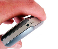 Наш экземпляр был оформлен в светло-серых тонах. Кроме того, в продажу поступят черный и красный вариант (последний, очевидно, рассчитан на женщин). Как ни странно, материал корпуса совсем не похож на то, что обычно мы видим в ценовой нише до 100 USD. Пластик приятный на ощупь, совсем не скрипит. Торцевая часть сделана из матового материала, а лицевая и задняя панель (она же крышка аккумуляторного отсека) - глянцевые, с намеком на металлик. Трубка плотная, без хруста и люфта элементов корпуса. Это, несомненно, большой плюс модели. Создается впечатление основательности и прочности - краш-тест мы, конечно, не проводили (хотя бы потому, что у нас был всего один экземпляр), но, надо полагать, надежность конструкции на высоте.