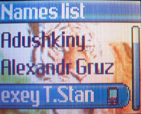 Следующий пункт - телефонный справочник. В нем может отображаться содержимое либо SIM-карты, либо памяти телефона. Смешанный режим не предусмотрен. В трубку можно занести до 100 имен, каждому можно записать мобильный номер, домашний, рабочий, факс, данные, заметку, E-mail, пейджер, а также определить имя в одну из 20 групп. Любой группе присваиваются индивидуальные мелодии вызова, а также картинки. Интересно, что в качестве картинок можно использовать и загруженные фото и делать таким образом функцию "фотокол".