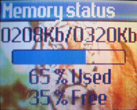 Тут же находится счетчик памяти. Судя по его показаниям, в телефоне 320 Кб, предназначенных для пользователя. Таким образом производитель немного перестраховывается, указывая в официальных источниках лишь 300 Кб.
