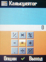 Диктофон не подвел - можно делать записи продолжительностью до 99 минут и 59 секунд. Никуда не делись и "стандартные" приложения, такие, как будильник, секундомер, таймер, калькулятор, конвертер величин. Особенно стоит отметить будильник, который удостоился чести быть представленным в главном меню отдельным пунктом. Можно назначать дни, по которым аппарат станет будить по утрам хозяина, а также мелодию звонка и текстовые заметки.