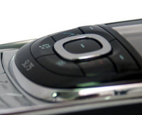 Навигационная кнопка вынесена на лицевую панель, вместе с ней здесь расположились две софт-кнопки, клавиша "прием"/"отбой", "музыкальная" кнопка и "мое меню". Так что все основные функции "слайдер" может выполнять в закрытом состоянии (в том числе по нему можно звонить и принимать звонки). С самого начала в эргономике навигационного блока нам не понравилось то, что мы нажимали вместо кнопки "Принять вызов" расположенную под ней "музыкальную" клавишу, а с "Отбоя" палец часто соскальзывал на "Мое меню", причина тому - необособленность наиболее часто используемых кнопок ("Прием"/"Отбой") - они сливаются со своими соседями. Но по прошествии некоторого времени пришла привычка, а вместе с ней - уверенное нажатие нужных кнопок, и уже после нескольких дней эксплуатации ошибочных нажатий почти не случалось.