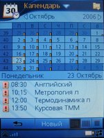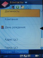 Телефонный справочник ограничен только свободной памятью, ее хватит для самых требовательных людей. Можно создавать архивы контактов и восстанавливать их. Для справки: 70 контактов в архиве занимают 25 Кб. Для абонента вводится следующая информация: имя, фамилия, произвольное количество телефонных номеров, адресов электронной почты, пейджеров, а так же адрес, должность и место работы, день рождения и заметка. Единственное, в чем телефонная книга проигрывает смартфонам на базе Series60 - это невозможность переименования отдельных полей. Контакты можно объединять в группы и рассортировывать по папкам. Рингтоны назначаются только на отдельных абонентов, как и фото для определителя.