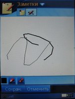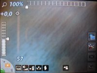 Глазок камеры закрыт активной шторкой. При повороте запускается приложение, отвечающее за съемку. Держать телефон следует горизонтально - так прорисован интерфейс. При этом пальцы не попадают в объектив, а все органы управления легко доступны. К ним относятся: навигационная кнопка (при закрытом флипе) - позволяет регулировать яркость и зум - до 2.5х, плавный; JogDial - при повороте переключает режим между фото и видео; кнопка спуска - при слабом нажатии происходит фокусировка, при сильном камера делает снимок. Для изменения настроек приходится заходить в меню. Регулируется режим: видео, рамка, пакетная съемка (4 кадра) и одиночная съемка; разрешение - 1600х1200, 1280х960, 640х480 и 320х240; автофокус - обычный, макро или выключен; баланс белого - 4 предустановки + авто; подсветка; эффекты - черно-белый, сепия, соляризация, негатив; качество - 3 степени сжатия JPEG; ночная съемка; место хранения снимков; автопросмотр после съемки; звук затвора - в том числе и отключение; автоспуск и сброс номеров файлов. Текущие значения параметров выводятся на экран в виде значков, их можно отключить, нажав на колесико.