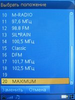 Радио при первом запуске предлагает просканировать весь диапазон. В результате запоминаются первые 20 станций. Поддерживается фоновый режим, название текущей радиостанции выводится на рабочий стол. Боковой кнопкой или кнопкой на гарнитуре можно переключать каналы.