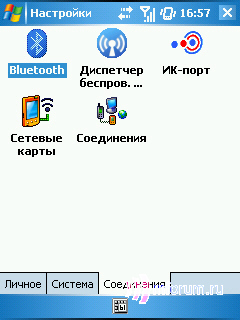Можно подключаться к компьютеру и с помощью Bluetooth, опять же через ActiveSync. ИК-порт отсутствует, но в настройках почему-то есть такой пункт: включение "ИК-порта" в данном случае означает разрешение на прием файлов по Bluetooth, налицо недоработка программистов.