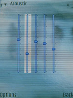 Настройки включают в себя случайное и повторное воспроизведение (отдельных песен и всего плей-листа), создание своих плей-листов и выбор типа эквалайзера. Он 5-полосный, регулируемый - и, что удивительно, по-настоящему эффективный. Есть 6 предустановок (акустика, бас, хип-хоп, поп, R&B, рок) и возможность создавать свои настройки. Особая опция - визуализация: это может быть либо картинка, либо две анимации - осциллограф и спектр.