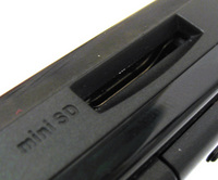 В качестве основного разъема используется плоский, расположенный на нижнем торце, в него вставляется переходник, на котором находится привычный miniUSB, а так же круглый разъем для зарядного устройства. Кстати, заряжаться коммуникатор умеет и от компьютера. Никакие другие аксессуары через этот порт подключить нельзя, а использовать переходник не очень удобно из-за его больших размеров. Рядом находится ИК-порт, его расположение нельзя назвать удачным, сверху он бы смотрелся гораздо логичнее. На левой стороне мы видим гнездо для наушников, 2.5 мм. Так как устройство не позиционируется как музыкальное, отсутствие полноценного 3.5 мм разъема вполне понятно, хотя места для него хватило бы. Наконец, выше находится слот для карты памяти miniSD.