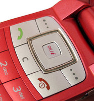 Блок управления отделен от цифровых кнопок пластмассовым "ребром" и покрашен в серебристый цвет. Он традиционно представлен софт-клавишами, кнопками вызова/сброса, навигационной кнопкой со вписанной клавишей "ОК" и клавишей коррекции "С" под ней. Всеми кнопками удобно пользоваться за счет из размера и рельефа.