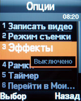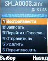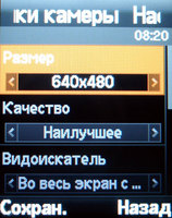 Реализация видео посредственная; при воспроизведении заметен "шум" и ощущается "торможение" ролика. Что касается настроек, то есть два варианта разрешения (176х144 и 128х96 точек). При записи можно отключить звук. Ролики и снимки сохраняются в соответствующие папки меню "Диспетчер файлов", откуда их можно передавать в MMS или по "синезубому" каналу, ставить на звонок (только фото) и на рабочий стол.
