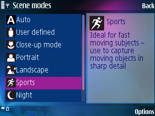 Режим "Спорт" предназначен для съемки быстро движущихся объектов. С флегматичностью включения камеры Nokia N95 и такой же неспешностью при съемке эта функция выглядит неактуальной. Опция сделана для галочки.