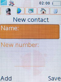 Справочник рассчитан на 1000 контактов (2500 номеров) плюс еще 220 - на сим-карте. При вводе нового имени указывается имя и номер абонента (мобильный, домашний, рабочий, факс и «другой»), до трех адресов электронной почты и web-адрес, картинка и мелодия, голосовая команда, должность, компания, адрес, день рождения и текстовая заметка. Можно создавать и свои группы; предустановок нет. Из других опций отметим быстрый набор (для клавиш «1»-«9»), создание визитной карточки, автосохранение на SIM-карте, копирование контактов на нее и с нее, отправку всего справочника по Bluetooth и его удаление, а также создание резервной копии телефонной книги на карте памяти. Вариантов отображения имен может быть два: либо сначала имя, либо – фамилия.