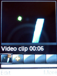У видео - два режима съемки (высокое качество и для MMS), а также возможность отключения микрофона. Разрешение доступно только одно – 176х144 точек. Качество клипов среднее. Что интересно: как и в "сайбершотах", снятые ролики и видео хранятся в одной папке, а при просмотре ее содержимого, если выбран режим отображения миникартинкой, ролики автоматически начинают воспроизводиться в границах этой картинки при наведении на них курсора.