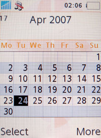 Дисплей - второй (после клавиатуры) предмет диспута пользователей: одна половина считает его превосходным, другая - никуда не годным. А все потому, что высокое разрешение матрицы (240х320 точек) и отменная цветопередача соседствуют с малыми физическими размерами экрана. Качество картинки объективно хорошее - зерна совсем не видно, а изображение сочное и яркое. Но диагональ - 1,8", этого слишком мало для современного аппарата, в наши дни редко найдешь трубку (в соответствующей ценовой категории, конечно) с диагональю менее 2,0", часто этот показатель равен 2,2" и более. В результате - мелкий шрифт и прочие сопутствующие недостатки добавляют строчку в разделе "минусы". Самое удивительное, что места на лицевой панели хоть отбавляй - легко можно было бы разместить матрицу с диагональю не менее 2,2", однако производитель этого не сделал, а свободное пространство заполнил симпатичной, но бесполезной в деле черной вставкой, окаймляющей экран.