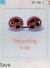 Диктофон позволяет записывать фрагменты любой длительности - хватило бы памяти. Записи сохраняются в папку "Звуки"; их можно передавать в сообщениях и по Bluetooth, ставить на звонок, на сообщение или на будильник. Доступна запись телефонных разговоров - после ответа на вызов нужно выбрать из меню "Функции" соответствующую команду .