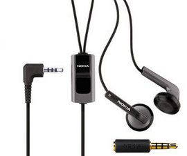 В базовую комплектацию помимо телефона входит батарея BP-5M, зарядное устройство AC-4, стереонаушники HS-47, карта памяти 256 Мб, USB-кабель, TV-кабель, инструкция, CD. Стереонаушники - обычные, не самые качественные, с кнопкой ответа на звонок, но без пульта управления плеером. Формат штеккера - "миниджек" 2,5 мм. В комплекте также есть переходник на 3,5 мм, так что можно подключать свои собственные наушники, но тогда они не смогут работать как телефонная гарнитура.