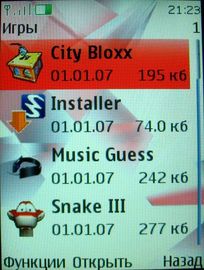 В телефоне установлены игры на любой вкус: головоломка Sudoku, знаменитая змейка Snake III (в 3D-исполнении), стратегия City Bloxx - строительство и развитие города с целью набрать максимальное число жителей, Music Guess - аналог "Угадай мелодию"; песни берутся из выбранной пользователем папки. Java-приложения не сворачиваются, так что многозадачность, увы, не реализована и в пятой версии платформы Series 40.