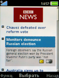 Встроенный браузер NetFront реализован стандартно; он хорошо отображает практически все странички. Правда, в нём есть извечная беда многих телефонов - некорректное отображение русского шрифта. Впрочем, это устраняется перепрошивкой.