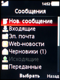 Аппарат поддерживает создание текстовых, мультимедийных, голосовых и e-mail-сообщений. В SMS можно добавлять изображения, звуковые эффекты, мелодии и анимации, а также преобразовывать их в MMS. Есть возможность создавать свои шаблоны. Короткое нажатие кнопки "*" меняет режим ввода (АА, Аа, аа), а продолжительное - включает/отключает словарь Т9. Кнопкой "#" меняется язык ввода: доступны только русский и английский плюс числовой режим. Удобно, что все входящие, но непрочитанные сообщения, лежат в одной папочке и доступны непосредственно из режима ожидания. Для сообщений можно выставить либо один из 6 предустановленных сигналов, либо "щелчки", либо другой сигнал, например, мелодию или запись с диктофона. Реализация MMS не претерпела качественных отличий. Опция "Масштабирование" позволяет "обрезать" изображения по трем градациям: 640x480, 320x240,160x120 точек. Кроме отчета о доставке, доступен и отчет о прочтении. Email-клиент поддерживает отправку и прием сообщений; они могут храниться на карте памяти. Еще один вид сообщений - RSS, это новости, загружаемые из интернета с сайтов, заданных пользователем.