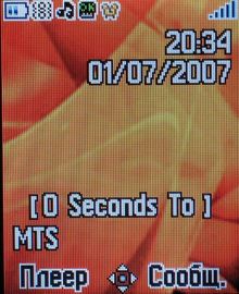 Внешний дисплей небольшой, однострочный - для отображения статусных иконок, времени, имени звонящего и названия текущей песни он вполне подходит, а для аппарата среднего ценового диапазона большего и не требуется. При наличии пропущенных вызовов, новых сообщений или во время воспроизведения музыки подсветка дисплея не гаснет - это плюс, поскольку энергии дисплей требует немного, и при этом сразу можно увидеть, есть ли пропущенные звонки или новые сообщения.