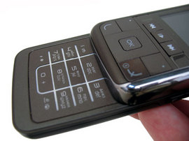 <p>Корпус телефона почти полностью выполнен из матового пластика "табачного" цвета; его оживляет металлическая вставка, идущая по всему периметру передней панели слайдера. Ближе к правой стороне она расширяется; такая же вставка имеется на задней панели в левой части. Пластик корпуса имеет текстуру, которая имитирует кожу. Насколько удачна такая имитация, можно спорить, но вот практичность такого покрытия заслуживает похвалы: во-первых, на нем не остается никаких отпечатков пальцев, а во-вторых, мелкие царапины на корпусе совершенно не заметны. Ну, а блестящий металл, конечно, залапывается, с этим ничего не поделаешь, да и поцарапать его куда легче - например, если вы носите трубку в кармане вместе с ключами.</p> <p>Еще один плюс покрытия "под кожу" в том, что оно очень приятно на ощупь, а легкий и компактный корпус делают телефон не только приятным, но и удобным в руке. Весит он 99 граммов - на грамм меньше, чем обычная плитка шоколада. Кстати, носить его можно в любой одежде, за исключением только джинсов - таскать в них аппарат толщиной почти в 19 мм вряд ли придется вам по душе.</p> <p>Что у нас с эргономикой, в первую очередь - с удобством раскрытия слайдера? Взглянув на трубку в первый раз, мы настроились скептически: никаких упоров для пальца на корпусе не имелось. Однако стоило пару раз открыть телефон, как скепсис сменился удовлетворением: палец при открытии приходится либо на край паредней панели, либо же слегка цепляется за выступающие "музыкальные" клавиши под дисплеем, так что раскрывается "девайс" весьма легко и удобно, равно как и закрывается. Качество раскладного механизма, правда, оставляет двоякое впечатление: присутствует довольно большой люфт половинок (причем как в открытом, так и в закрытом состоянии). Впрочем, люфт - это вообще родовая болезнь слайдеров. Автодоводка неплохая, механизм срабатывает при половинном открытии корпуса. Открытие и закрытие сопровождаются довольно громким стуком панели.</p> <p>Крышка, прикрывающая аккумуляторный отсек, снимается с некоторым усилием, движением "на себя". Мешает то, что сам слайдер при попытке снять крышку начинает открываться - приходится его придерживать. Чуть выше батарейного гнезда располагается гнездо SIM-карты, уходящее вглубь корпуса. Вытащить симку оттуда легко, но сделать это можно только при снятом аккумуляторе.</p>