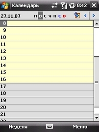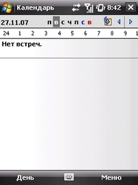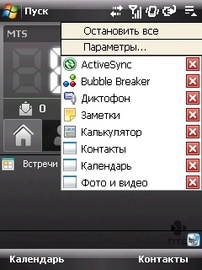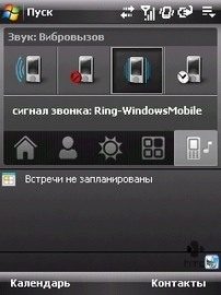 Интерфейс WindowsMobile 6 остался неизменен, как и сама навигационная оболочка Touch Flo. Однако добавился ряд моментов, существенно облегчающих удобство работы пальцами. При открытии аппарата автоматически предлагается выбрать из списка нужную операцию: новое сообщение электронной почты, новое SMS, новое MMS, новая встреча, задача, заметка или же ввод нового контакта. Команды написаны крупными буквами, так что места для пальца хватает, соседнюю строку риска зацепить нет. А если вам ничего из этого не нужно, то через 5 секунд так же автоматически происходит выход в режим ожидания. Следующее немаловажное отличие - представление меню «Пуск». Оно может отображаться либо в обычном виде, либо в укрупненном - чтобы пальцами ловчее было работать с ним. Это легко изменить в настройках. Если выбран укрупненный вариант, то тогда из меню исчезает блок из 5 строк для недавно активированных приложений (он занимают среднюю часть меню «Пуск»), а вместо этого сверху в меню появляется строка с 5 иконками как раз для этих приложений. Касанием происходит их запуск. То есть, терять мы ничего не теряем, а при этом пальцами работать удобно и необходимость в стилусе, в общем-то, отпадает. Экран "Сегодня" также претерпел некоторые изменения: в нем не 3, а 4 графических меню (вызываются касанием иконок с соответствующими обозначениями): собственно экран "Сегодня", погода, вкладка с дополнительными 10 плагинами для быстрого доступа и смена профилей (мелодия, беззвучный вибро, автоматически). Ниже - строка календаря. Пальцами удобно работать и здесь.