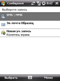 Аппарат поддерживает создание SMS, MMS, сообщений электронной почты. Для работы с e-mail необходимо настроить учетную запись Outlook и POP3/IMAP4. К вашим услугам - графическая клавиатура. Пальцем сообщение набирать можно, но приходится все время следить, чтобы не было "не тех нажатий". Максимальная длина одного SMS-сообщения - 160 символов. MMS-служба реализована стандартно; в сообщения можно вставлять изображения, видеоклипы и звукозаписи.