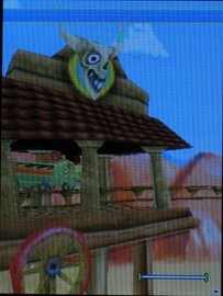 Съемка ориентирована на горизонтальный режим. Справа посередине - переключение режимов (фото, видео и т.д.), осуществляющееся горизонтальными стрелками навигационной кнопки. В левом нижнем углу - значки выбранных настроек. Опции достаточно разнообразны: 4 режима съемки (обычная, панорама-склейка из 3 снимков, серия из 4 кадров, а также 11 рамок. Можно отрегулировать разрешение (только для обычной съемки: 2, 1 или 0,3 Мп), ночной режим, автотаймер, эффекты (ч/б, негатив, сепия), баланс белого (автоматически, ясно, облачно, флуоресцентный свет, лампы накаливания), качество изображения, звук затвора (4 варианта), место хранения. Из настроек видео отметим регулировку время записи (на всю память или для MMS) плюс возможность отключения микрофона, а также все настройки, присущие фоторежиму. Качество снимков приемлемое, хотя ничего выдающегося камера не показывает - как-никак, не "сайбершот". Видеозапись не лучшего качества - стабилизации изображения нет, и очень сильно заметно "торможение" кадра.