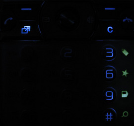 Цифровая клавиатура до некоторой степени напоминает ту, что мы видели в модели K810i. Это такие же круглые кнопки, теперь, правда, пластиковые, а не металлические. Работать с ними очень комфортно, так как расположены ряды далеко друг от друга, а значит, ошибочные нажатия практически исключены. Палец с кнопок не соскальзывает, что важно при длительном наборе текста. Обозначения цифр нанесены на сами кнопки, в то время как алфавит располагается слева от них на самом корпусе. Подсветка белого цвета; подсвечиваются как цифры, так и буквы, причем в белой модели оказались ярче выделены цифровые обозначения, а в черной - буквенные. Как и в K810i, один из рядов выделен для основной функции аппарата. В "сайбершоте" это была камера, а здесь правый ряд кнопок отвечает за браузерные функции, о них подробнее читайте ниже. Подсветка обозначений совпадает с расцветкой корпуса - зеленая и красная соответственно.