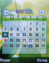 Все приложения и функции органайзера находятся в меню "Раб. и досуг" - "Инструменты". Помимо традиционных календаря, будильника и калькулятора (он предельной простой, с 4 арифметическими действиями и памятью), есть также конвертер валют, мер веса и длины, а также секундомер. Он может быть обычным (с циклическими и промежуточными отсчетами), а можно задействовать мультисекундомер. Есть сохранение рекордов. Кроме того, присутствует также ридер электронных книг, позволяющий вам читать с экрана телефона книгу в электронном формате. Наконец, упомянем также приложение "Здоровье". Для женщин в нем доступен календарь тех самых дней, а для всех и каждого - расчет нормы массы тела. Он происходит просто: вы указываете пол, рост и вес, после чего вам выдается сообщение о том, нормальна ли ваша масса тела или следует ее подкорректировать.