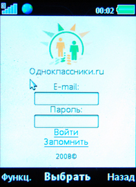 Главное меню представлено 12 иконками, сгруппированными в 4 ряда; других вариантов отображения нет. Все подпункты выглядят в виде списков; для меню "Параметры", "Вызовы", Диспетчер файлов", "Мои ссылки" и при записи новых контактов используются горизонтальные меню-закладки, облегчающие работу с ними. Интересной особенностью является наличие в меню встроенного «виджета» «Однокласники». (О том, что такое on-divice порталы и о виджетах мы подробно рассказывали в тесте:///) . Для кого-то это будет дополнительным пунктом «За» при покупке телефона. Хотя некоторые люди категорически плевались, когда видели в меню трубки слово «Одноклассники».