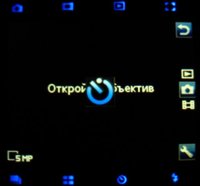 При съемке видео также используются сенсорные кнопки, но их назначение несколько меняется. В верхнем ряду остаются только первые три кнопки (переключение режимов фото, видео и просмотра), в нижнем первая кнопка переключает длительность ролика (неограниченная или для MMS), вторая включает ночной режим, третья по-прежнему активирует автотаймер, а четвертая включает постоянную подсветку светодиодом вспышки при съемке. К прочим настройкам, активируемым через меню, относятся запись звука, замер экспозиции, баланс белого, эффекты, стабилизатор. Выбора формата и разрешения нет, ролики снимаются с разрешением 320х240.
