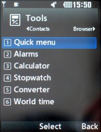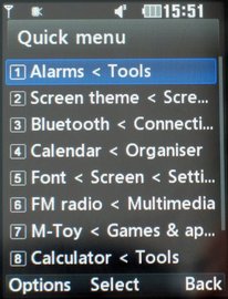 <p>Главное меню представляется в виде сетки из 12 иконок, либо в виде горизонтальной карусели. В обоих случаях иконки однотонные, а переходы между пунктами анимированные. Доступны две темы оформления, темная и светлая. В телефоне реализована многозадачность, список открытых приложений вызывается нажатием боковой кнопки, а переход между ними осуществляется при помощи навигационной кнопки. При этом нельзя запустить одновременно например плеер и камеру, либо плеер и игры M-Toy.</p> <p>Помимо основного, присутствует и так называемое быстрое меню, в которое помещаются ярлыки наиболее нужных пользователю приложений. Это меню вызывается нажатием навигационной кнопки вверх в режиме ожидания.</p> <p>В качестве фона рабочего стола, помимо графических файлов, можно установить флеш-анимацию. Настраивается вывод, внешний вид и расположение таких элементов, как часы, вторые часы и календарь.</p>