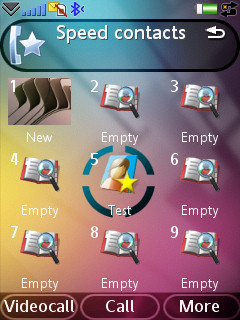 В центре изначально находится ярлык для вызова главного меню. Также вызвать меню можно нажатием центральной софт кнопки, она находится прямо под этим ярлыком. Правее расположен быстрый вызов программ. На панели можно разместить до 9 избранных программ, причем могут быть использованы как стандартные приложения, так и установленные пользователем. Затем идут быстрые контакты. На эту панель можно поместить несколько номеров телефонов для набора, причем выбирается конкретный номер, если для одного контакта их в телефонной книге несколько; также присутствует опция добавить номер для набора SMS-сообщения. К сожалению, номера располагаются списком, поэтому на экране одновременно видно не больше 4 номеров, да и фотографии достаточно мелкие. Слева от ярлыка главного меню находится вызов панели SMS. На ней отображаются непрочитанные сообщения, а также строка для набора нового SMS. Еще левее – панель календаря. Здесь перечислены ближайшие события, и здесь же можно создать новое.