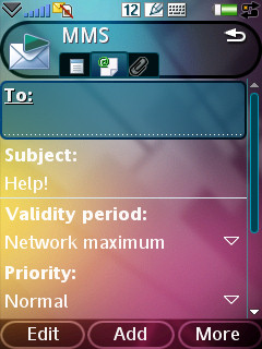 При открытии программы «Сообщения» предлагается создать новое SMS или набрать номер голосовой почты, а также отображается количество непрочитанных сообщений. В редакторе помимо окна для набора текста и строки для ввода адресата присутствует ряд кнопок – вставка смайликов, рисунков и мелодий (из стандартного набора), изменение размера шрифта. Количество памяти, выделяемой для SMS-сообщений, не ограничено - используется динамическая память телефона. Для сообщений выставляются любые сигналы, в том числе MP3 с карты памяти. MMS-редактор имеет стандартные возможности – вставка аудио, видео и картинок, а также рисованных от руки заметок. Работа с электронной почтой практически не отличается от обычных сообщений. E-mail клиент нагляден - редактор текста и список прикрепленных файлов.