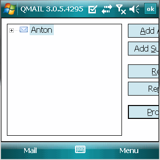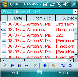 на эмуляторе. Программа QMail обладает англоязычным интерфейсом.